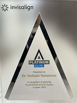 インビザライン・ファーストのメリットは、まずは簡単に取り外しがきき、いつも通りに食事や歯みがきを行えるので他の矯正装置と比較して虫歯のリスクが低くなること、透明で目立たないので装着していることが他人からわからないこと、薄くて滑らかな素材を使用しているため、痛みが少ないことです。デメリットは、使用対象に条件があることと、1日20時間以上装着しないといけないことです。なお、山村理事長はインビザライン治療のプラチナエリートの資格を有しています。